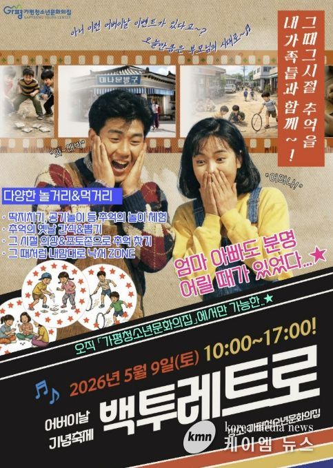 (케이엠뉴스) 가평청소년문화의집이 어버이날을 앞두고 5월 9일 세대 간 공감과 소통을 위한 체험형 프로그램 ‘어버이날: 백투레트로’를 운영한다.