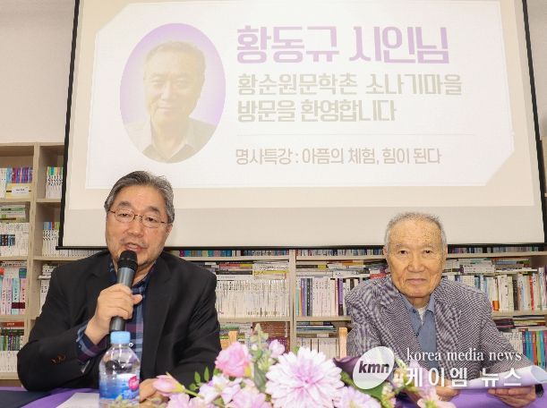 (케이엠뉴스) 황순원 작가의 장남인 황동규(1938~) 시인이 지난 23일 서종면에 위치한 황순원문학촌 소나기마을(촌장 김종회)에서 열린 ‘2026 소나기마을 문학교실’에서 ‘아픔의 체험, 힘이 된다’를 주제로 특별 강연을 진행했다.