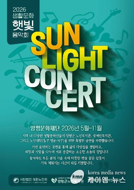 (케이엠뉴스) (재)양평문화재단은 관내 문화 예술 향유 기회를 확대하기 위해 찾아가는 음악회 ‘2026 햇빛 음악회’를 오는 5월 8일부터 본격적으로 운영한다고 밝혔다.
