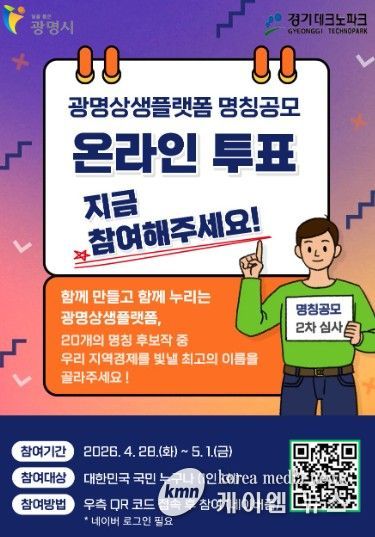 (케이엠뉴스) 광명시가 ‘광명상생플랫폼’의 최종 명칭 선정을 위해 온라인 투표를 실시한다.