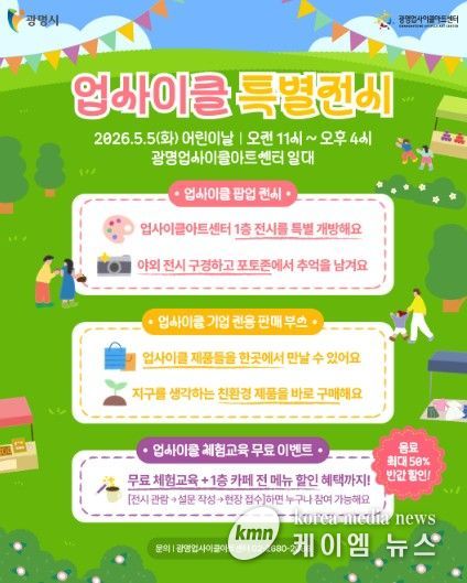 (케이엠뉴스) 광명시 광명업사이클아트센터는 오는 5월 5일 어린이날을 맞아 자원순환 가치를 예술과 체험으로 즐기는 ‘업사이클 특별전시’를 운영한다.