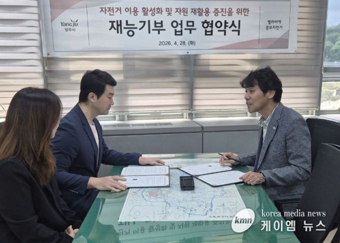 양주시는 28일 자전거 정비업체 ‘벨라비에 중보자전거(대표 이광은)’와 방치 자전거 재활용 및 이용 활성화를 위한 업무협약(MOU)을 체결했다.
