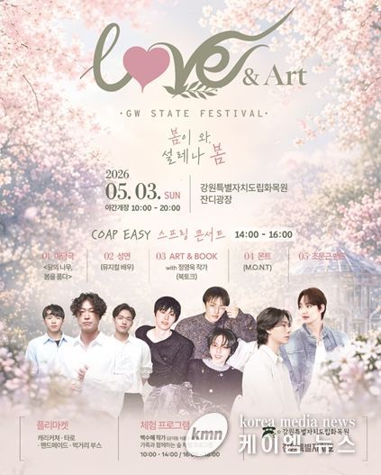 (케이엠뉴스) 강원특별자치도 산림과학연구원은 5월 3일 강원특별자치도립화목원 일원에서 'LOVE · ART 페스티벌'을 개최한다. 행사는 오전 10시부터 오후 8시까지 야간 개장을 포함해 진행된다.