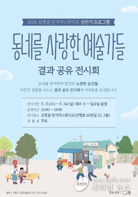 (케이엠뉴스) 시흥시는 오는 5월 13일부터 24일까지 문화재생공간 모랫골 만지작스튜디오에서 2026년 상반기 프로그램 ‘동네를 사랑한 예술가들’ 결과 공유 전시를 개최한다.