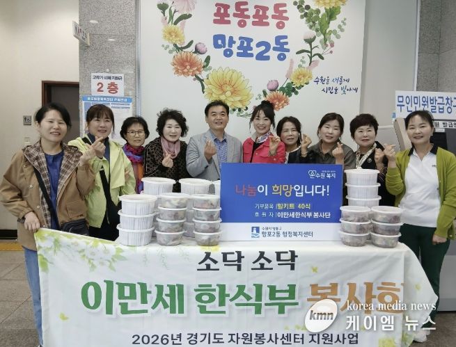 (케이엠뉴스) 수원시 영통구 망포2동은 지난 28일 이만세 한식부 봉사회가 관내 경로당 어르신들을 위해 밀키트 40식을 기부하며 따뜻한 나눔을 실천했다고 밝혔다.