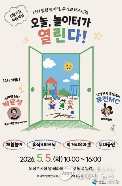 (케이엠뉴스) 의정부시는 제104회 어린이날을 맞아 5월 5일 오전 10시부터 오후 4시까지 의정부시청 앞 평화의 광장 및 도로 일원에서 ‘2026년 의정부시 어린이날 기념행사’를 개최한다.