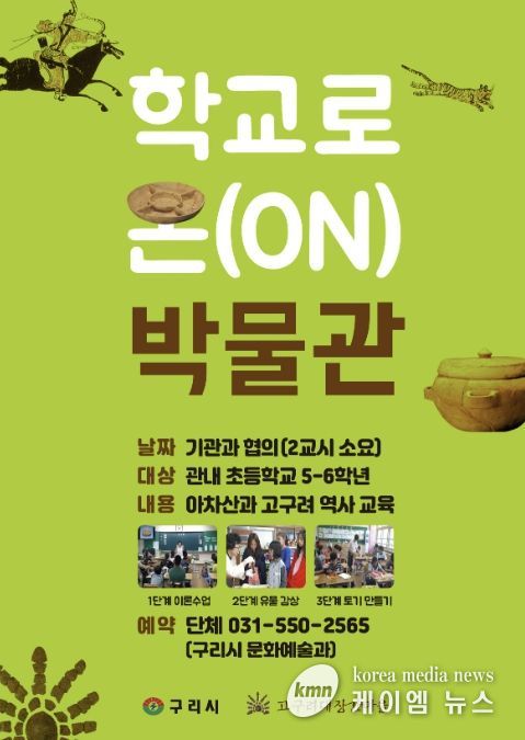 (케이엠뉴스) 구리시는 4월 28일부터 오는 9월까지 고구려 유물 상자를 들고 관내 초등학교를 찾아가는 ‘학교로 온(ON) 박물관’프로그램을 운영한다고 밝혔다.