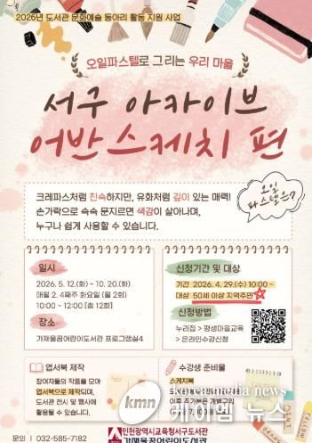 (케이엠뉴스) 인천광역시교육청서구도서관은 29일부터 50세 이상 지역 주민을 대상으로 우리 마을의 풍경을 그림으로 기록하는 문화예술 프로그램 ‘서구 아카이브 어반스케치 편’ 참여자를 모집한다.