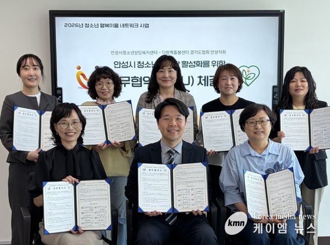 (케이엠뉴스) 안성시청소년상담복지센터는 지난 27일 안성맞춤공감센터에서 다함께돌봄센터 경기도협의회 안성지회와 청소년의 건강한 성장과 복지 증진을 위한 업무협약(MOU)을 체결했다.