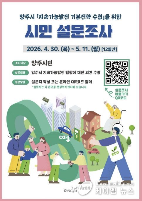 (케이엠뉴스) 양주시는 ‘지속가능발전 기본전략 및 추진계획’ 수립을 위해 시민 의견을 수렴하는 설문조사를 실시한다.