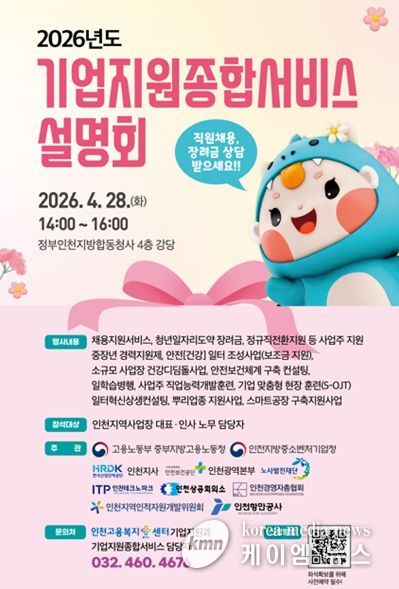(케이엠뉴스) 중부지방고용노동청은 인천지방중소벤처기업청 등 유관기관과 함께 4월 28일 오후 2시 정부인천지방합동청사에서 ‘기업지원 종합서비스’ 설명회를 개최했다.