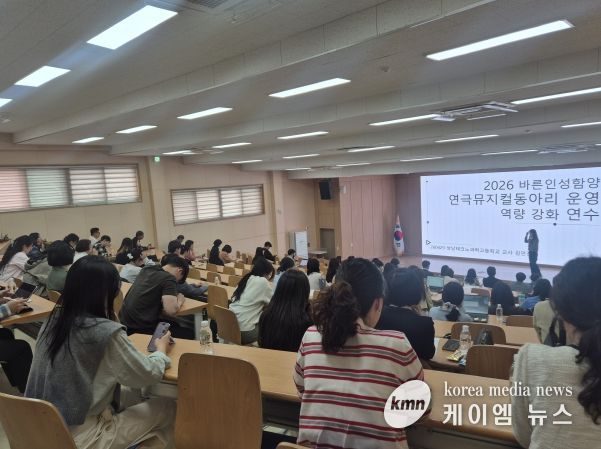 (케이엠뉴스) 충남교육청은 29일, 충청남도교육청교육연수원(공주)에서 2026학년도 ‘바른 인성 함양 연극・뮤지컬 지도교사 배움자리’를 개최했다. 이날 행사는 도내 초중고 연극·뮤지컬 동아리 지도교사 80여 명을 비롯해 14개 교육지원청 담당 장학사, 충남교육연극협회 운영진 등 총 120여 명이 참석했다.
