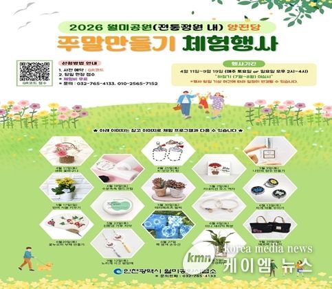 (케이엠뉴스) 인천광역시 월미공원사업소는 오는 9월 20일까지 월미공원 내 전통정원 양진당에서 ‘주말 만들기 체험 행사’를 운영한다고 밝혔다.
