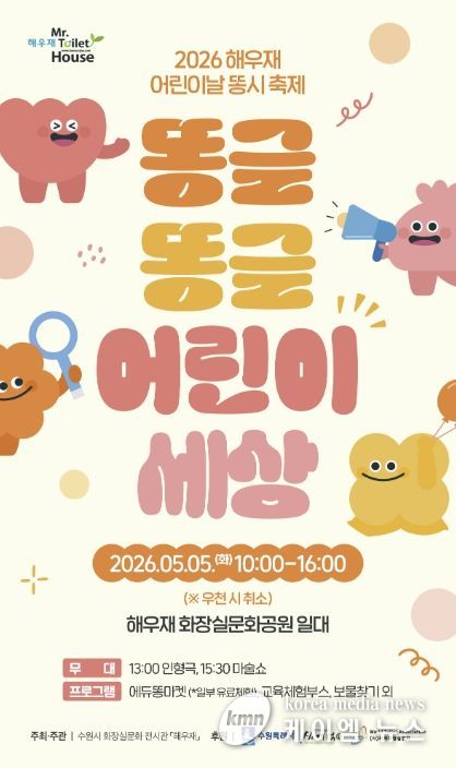 (케이엠뉴스) ‘2026 해우재 어린이날 똥시 축제-똥글똥글 어린이 세상’이 5월 5일 오전 10시부터 오후 4시까지 해우재 화장실문화공원 일원에서 열린다.