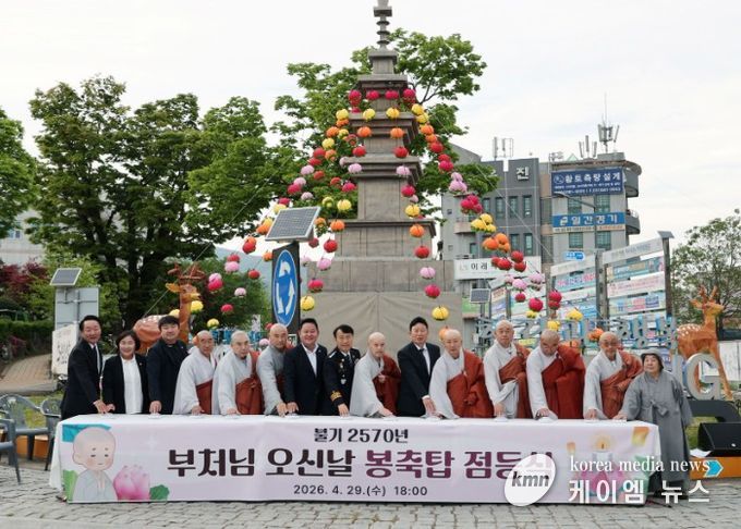 (케이엠뉴스) 불기 2570년 부처님오신날을 맞아 가평군민과 함께하는 봉축탑 점등식이 4월 29일 가평군청 앞 회전교차로에서 봉행됐다.