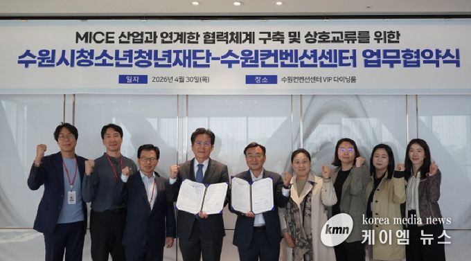 (케이엠뉴스) 수원시청소년청년재단(이사장 최종진)과 수원컨벤션센터가 4월 30일 양 기관의 상호 협력과 교류 확대를 위한 업무협약을 체결했다.
