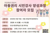 (케이엠뉴스) 안성시는 아동친화도시로서 아동권리 인식 확산과 시민강사 양성을 위해 '아동권리 시민강사 양성과정' 참여자를 모집한다. 이번 과정은 아동권리에 대한 지역사회 인식을 확산하고, 관련 교육을 수행할 시민강사를 양성함과 동시에 중장년층의 사회참여 기회를 확대하기 위해 마련됐다. 교육은 2026년 4월 15일부터 6월 25일까지 운영되며, 총 11회차에 걸쳐 집합교육과 자율학습을 병행하여 진행된다. 모집 대상은 안성시에 거주하는 40세부터 64세까지의 중장년 시민 20명이다. 교육신청은 4월 6일부터 10일까지 안성시평생교육통합플랫폼(안성배움e)를 통해 접수한 후, 별도의 신청서를 이메일로 제출하면 된다. 교육대상자는 신청서를 바탕으로 참여 의지와 지원동기 등을 종합적으로 평가해 선발할 예정이다. 교육과정은 ▲아동권리 및 인권 기초 이해 ▲유엔아동권리협약의 이해 ▲긍정적 훈육 ▲아동인권 교육 프로그램 설계 등 이론과 실습을 병행하는 체계적인 내용으로 구성된다. 수료자는 민간자격인 ‘아동인권옹호전문가 2급’ 자격시험에 응시할 수 있으며, 향후 관내 초·중학교와 연계한 교