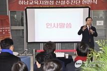 (케이엠뉴스) 하남시가 성장을 넘어 ‘교육 자치 1번지’로의 도약을 공식 선언했다. 하남시는 1월 29일 종합복지타운에서 ‘하남교육지원청 신설추진단’ 현판식을 개최하고 33만 시민의 숙원인 독립된 교육 행정 체계 구축을 위한 실질적인 실행 단계에 진입했다. 이날 행사에는 이현재 하남시장과 오성애 광주하남교육지원청 교육장을 비롯하여 조성윤 전 경기도교육감, 학운위, 학부모회, 녹색어머니회 등 교육 현장을 대표하는 지역 인사 약 200여 명이 참석해 하남 교육의 새로운 출발을 함께했다. 현판 제막식에서는 종합복지타운 1층 로비 정문에 설치된 현판이 공개되며 하남 교육 자치 시대의 개막을 알렸다. 제막식 직후 참석자들은 신설추진단이 실무를 수행할 6층으로 이동해 시설 라운딩을 진행하며 하남 교육의 미래가 그려질 현장을 직접 살폈다. 이 공간은 교육지원청 소속의 ‘추진단’과 하남시의 ‘지원단’, 그리고 ‘하남교육지원센터’가 한데 어우러진 합동 업무공간으로 운영될 예정이다. 이는 단순히 사무실을 공유하는 차원을 넘어 수시 합동회의를 통해 과밀학급 해소와 학교 신설 등 지역의 고질적인 교육 현안에 대해 시와