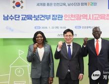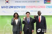(케이엠뉴스) 인천광역시교육청은 22일, 남수단 정부 및 이태석 재단 관계자가 참석한 가운데 교육협력 간담회를 운영했다. 이번 간담회에는 남수단 고등교육부 장관(Madut Biar Yel)과 보건부 장관(Sarah Cleto Rial), 이태석 재단 이사장, 이태석리더십아카데미 대표 등이 참석하여 글로벌 교육 협력을 위한 다양한 방안을 논의했다. 이번 논의를 계기로 인천시교육청은 이태석 재단과 지난 12월 체결한 업무협약을 구체화한 ‘읽걷쓰 연계 공동 프로그램 운영’, ‘글로벌 미래 인재 양성을 위한 리더십 교육’, ‘건강 평등권 증진을 위한 공공의료 봉사활동’ 등 다양한 사업을 남수단과 협력해 추진할 예정이다. 도성훈 교육감은 “인천교육이 지향하는 배움의 가치가 남수단의 교육 발전에 기여하기를 기대한다”며 “앞으로도 국제적 동반관계를 통해 교육의 공공성과 협력의 가치를 확장해 나가겠다”고 밝혔다. 인천시교육청은 이번 간담회를 계기로 지속 가능한 국제 교육협력체계를 구축하고, 세계 시민적 배움의 공동체 형성을 위한 교류를 확대할 계획이다.