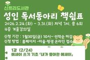 (케이엠뉴스) 인천광역시교육청신트리도서관은 성인을 대상으로 글쓰기 기초부터 퇴고까지 체계적인 글쓰기 과정을 함께하는 독서동아리 ‘책쉼표’ 참여자를 모집한다. 이번 프로그램은 책과 글을 매개로 자신을 돌아보는 시간을 갖게 하는 독서동아리로, 에세이 중심의 읽기와 집필 활동을 통해 참여자의 사유와 표현의 폭을 넓히고자 마련했다. 강의는 ‘나라는 사람’, ‘일상의 발견’, ‘기억의 습작’ 등의 주제로 구성되며, 글쓰기의 기초를 다진 뒤 제시된 글감을 바탕으로 초고 작성부터 퇴고 과정까지 직접 실습하며 완성도 있는 글쓰기 역량을 쌓을 수 있도록 운영한다. 프로그램은 2월 24일부터 3월 31일까지 6회에 걸쳐 운영되며, 모집은 1월 30일부터 2월 18일까지 신트리도서관 누리집에서 선착순으로 진행된다. 프로그램 신청 및 운영에 대한 자세한 사항은 신트리도서관 누리집을 확인하거나 독서문화과로 문의하면 된다.