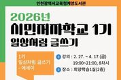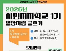 (케이엠뉴스) 인천광역시교육청계양도서관은 시민의 글쓰기 역량을 높이고 창작 경험을 지원하기 위해 2026년 시민저자학교 1기 ‘일상처럼 글쓰기(에세이 편)’를 운영한다. 이번 프로그램은 2월 27일부터 4월 17일까지 매주 금요일 총 8회에 걸쳐 진행되며, 도서관 내 회양학습 1실에서 운영된다. 강의는 김도현 작가가 맡아 진행하며, 일상 속 경험을 글로 풀어내는 법과 에세이 창작의 기초를 다룬 후, 참여자가 직접 에세이를 읽고 써보는 실습과 함께 개인별 피드백을 제공할 예정이다. 수강 신청은 2월 3일 오전 10시부터 계양도서관 누리집에서 가능하며, 글쓰기에 관심 있는 성인이라면 누구나 참여할 수 있다. 자세한 사항은 계양도서관 누리집의 공지사항을 확인하거나 독서문화과로 문의하면 된다.