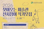 (케이엠뉴스) 인천광역시교육청은 지역과 연계한 학교예술교육의 일환으로‘찾아오는 미술관’전시 참여 작가를 모집한다. ‘찾아오는 미술관’은 학교 유휴공간을 활용해 미술 작품을 전시함으로써 학생들이 일상 속에서 예술을 자연스럽게 경험하도록 돕는 학교예술교육 사업이다. 이번 모집은 인천 지역 전문 미술작가를 대상으로 하며, 접수 기간은 2월 9일부터 2월 20일 오후 4시까지이다. 자세한 사항은 인천시교육청 누리집이나 블로그에서 확인할 수 있다. 시교육청 관계자는“찾아오는 미술관은 2023년 시작 후 매년 높은 만족도를 보여 온 사업으로, 일상에서 예술을 접하는 경험은 학생들의 감수성과 사고의 폭을 넓히는 큰 힘이 될 것”이라며 “올해도 많은 지역 작가분들이 함께해 주시길 기대한다”고 말했다.