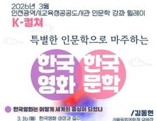 (케이엠뉴스) 인천광역시교육청계양도서관은 한국 영화와 문학을 통해 우리 문화의 세계적 위상을 인문학적으로 조명하는 ‘세계가 주목하는 K-영화와 K-문학’ 강좌 참여자를 모집한다. 3월 16일부터 30일까지 진행되는 이번 강좌는 김동현 서울독립영화제 위원장이 ‘한국 영화는 어떻게 세계의 중심이 됐나’를 주제로 한국 영화의 성장사와 K-컬처 속 위상을 짚어보고, 이어 곽효환 작가가 ‘세계문학으로서의 한국문학, 세계인이 함께 읽는 한국문학’을 주제로 한국 문학의 세계화 과정과 노벨문학상 수상의 의미를 조명할 예정이다. 모집은 2월 23일 오전 9시부터 계양도서관 누리집 또는 전화를 통해 선착순으로 진행하며, 자세한 사항은 도서관 누리집을 참고하거나 독서문화과로 문의하면 된다.