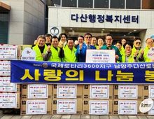 (케이엠뉴스) 남양주시는 11일 국제로타리3600지구 남양주다산로타리클럽과 울림로타리위성클럽이 다가오는 설을 맞아 300만 원 상당의 설 선물세트를 다산1동 지역사회보장협의체에 기탁했다고 밝혔다. 이번 나눔은 설 명절을 앞두고 지역 내 소외된 이웃들이 보다 풍성하고 따뜻한 명절을 보낼 수 있도록 마련됐다. 기탁된 설 선물세트는 다산1동 지역사회보장협의체 위원들이 직접 대상 가정을 방문해 안부를 살피며 전달할 예정이다. 이영호 회장은 “설 명절을 앞두고 주변 어려운 이웃들이 조금이라도 따뜻한 마음을 느끼길 바라는 마음으로 나눔을 준비했다”며 “앞으로도 지역사회와 함께하는 봉사와 나눔 활동을 꾸준히 이어가겠다”고 말했다. 이기복 다산행정복지센터장은 “다가오는 설 명절, 외로운 이웃들에게 가장 큰 힘이 되는 것은 지역사회의 관심과 사랑이다”며 “다산행정복지센터에서도 복지 사각지대에 놓인 이웃들이 따뜻한 명절을 보낼 수 있도록 적극 지원하겠다”고 전했다. 한편, 남양주다산로타리클럽은 매년 명절마다 지역 내 취약계층을 위한 기부 활동을 꾸준히 이어오며 지역사회에 나눔의 가치를 실천하고 있다.