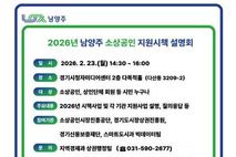 (케이엠뉴스) 남양주시는 오는 23일 다산동 경기시청자미디어센터 다목적홀에서 소상공인의 자생력 강화와 민생안정을 위한 ‘2026년 소상공인 지원시책 설명회’를 개최한다고 11일 밝혔다. 이번 설명회는 소비 촉진, 경영 안정, 상권의 지속 가능한 성장으로 이어지는 남양주시 소상공인 정책 전반을 공유하고, 현장에서 체감할 수 있는 맞춤형 지원책을 안내하기 위해 추진됐다. 주요 내용으로는 △남양주사랑상품권 확대 발행을 통한 지역 내 소비 촉진 △210억원 규모의 특례보증 및 이차보전 지원 △소상공인 경영환경개선사업 확대 안내 △질의응답 시간 등으로 구성된다. 아울러 이번 설명회에는 소상공인진흥공단, 경기도시장상권진흥원, 경기신용보증재단 등 유관기관이 함께 참여해 소상공인과 상인단체에 유용한 공모사업과 지원책을 폭넓게 홍보할 계획이다. 시 관계자는 “어려움을 겪는 소상공인들이 다시 일어설 수 있도록 시가 마련한 다양한 맞춤형 지원책을 적극적으로 알릴 것”이라며 “앞으로도 현장 중심의 실효성 있는 지원 정책을 통해 소상공인들에게 실질적인 도움이 되도록 최선을 다하겠다”고 말했다. 한편, 이번 설