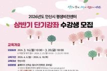 (케이엠뉴스) 안산시 평생비전센터는 오는 16일부터 ‘안산시평생비전센터 상반기 단기강좌’ 수강생을 모집한다고 10일 밝혔다. 이번 단기강좌는 시민들의 배움에 대한 수요를 반영해 실생활에 도움이 되는 특화 교육 과정으로 마련됐다. 강좌는 ▲나만의 컬러 찾기 ▲제미나이X구글 AI 워크스페이스 ▲일상의 유용한 기초목공 ▲특별과정 ‘부의 미학’ 재무아카데미 등 총 6개 과정이며, 모집인원은 114명이다. 교육은 4월 6일부터 6월 18일까지 6~10주 과정으로 운영된다. 과목별로 교육 기간과 장소가 다르므로 신청 시 확인이 필요하다. 수강생 모집은 오는 16일 오전 10시부터 20일 오후 6시까지 진행되며, 미달 과목과 대기자 모집은 오는 23일부터 25일까지다. 이민근 안산시장은 “시민들이 즐겁게 참여할 수 있도록 특화 프로그램을 준비했으니 관심을 갖고 많이 참여해 주시기 바란다”고 말했다.