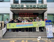(케이엠뉴스) 평택시 비전2동 행정복지센터는 지난 16일 비전2동 행정복지센터 일대에서 에너지 절약 캠페인과 무단투기 예방 활동을 진행했다. 이번 활동에는 비전2동 주민과 행정복지센터 직원 등 30여 명이 참여해 에너지 절약 실천 분위기 확산과 쾌적한 생활환경 조성을 위한 다양한 활동을 펼쳤다. 참여자들은 행정복지센터 및 인근 도로에서 중동 전쟁 장기화에 따른 ‘에너지 지킴이 3․3․3 운동’캠페인을 전개하며 주민들에게 에너지 절약 실천을 적극 홍보했다. 아울러 무단투기 예방 홍보물을 배부하고, 인도와 녹지지역 등에 버려진 쓰레기를 수거했다. 박근숙 비전2동장은 “앞으로도 비전2동 행정복지센터는 에너지 절약 실천과 환경 보호 활동을 지속적으로 추진해 깨끗하고 살기 좋은 클린 비전2동 조성에 최선을 다하겠다”라고 밝혔다.