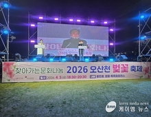(케이엠뉴스) 수원특례시의회는 4일 만석공원 일원에서 열린 '2026 만석거 새빛축제'에 참석해 시민들과 함께 축제의 시작을 알리고, 수원을 대표하는 야간 관광 콘텐츠의 가능성을 확인했다. 이번 축제는 세계문화유산인 만석거의 역사적 가치를 널리 알리고, 벚꽃 시즌과 연계한 야간관광 활성화를 위해 마련됐다. 특히 ‘2026 수원 방문의 해’를 맞아 추진되는 대표 프로그램 중 하나로, 관광객 유입과 지역 상권 활성화에도 긍정적인 역할이 기대된다. 이날 개막식에서는 드론 500여 대가 참여한 라이트쇼와 화려한 불꽃놀이가 만석거 밤하늘을 수놓으며 장관을 연출했고, 음악분수와 버스킹 공연 등 다양한 문화 콘텐츠가 어우러져 현장을 찾은 시민들에게 풍성한 즐길 거리를 제공했다. 수원특례시의회는 행사에 참석해 시민들과 소통하며 축제 운영 상황을 살펴보고, 지역 관광자원과 연계한 문화콘텐츠 확대 방안에 대해 공감대를 나눴다. 행사에는 이재식 의장을 비롯한 시의원들이 함께 참석해 시민들과 축제의 시작을 함께했다. 이재식 의장은 “만석거는 시민의 삶을 풍요롭게 하는 문화공간”이라며“이번 축제가 수원을 대표하는 야간 관