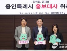 (케이엠뉴스) 용인특례시는 3일 용인 시민인 방송인 김미화씨와 배우 안재모씨를 홍보대사로 위촉했다. 시는 스노보드 국가대표 유승은 선수와 유튜버 최창훈·채세하씨 등 3명에게도 홍보대사 위촉장도 줬다. 이상일 시장은 이날 시청 접견실에서 열린 ‘용인특례시 홍보대사 위촉식’에서 김미화씨와 안재모씨에게 위촉장을 수여하고, 용인 발전을 위한 정책과 시민 삶의 질 향상을 위한 문화·예술 행사를 대중에게 알릴 수 있도록 적극 활동 해줄 것을 당부했다. 이 시장은 “용인시민으로서 지역 발전에 큰 관심을 기울여 주시고, 시의 활동을 많이 응원해 주시는 방송인 김미화씨와 배우 안재모씨에게 감사 인사를 드린다”며 “인구 111만명을 넘은 용인특례시는 150만 광역시로 가는 여정에 있고, 초대형 반도체 프로젝트를 진행하고 있으며, 문화, 교육, 체육, 복지, 환경, 교통 등 여러 분야에서 큰 성과를 거두고 있다”며 “홍보대사들께서 용인의 발전상을 시민들과 다른 지역 국민들께 많이 알려주시고, 시가 해야 할 일들에 대해서도 많은 가르침을 주시기 바란다”고 말했다. 용인특례시의 홍보대사에 위촉된 방송인 김미화씨는 ‘순악질