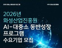(케이엠뉴스) 화성산업진흥원은 AI 기술 사업화 협력을 통해 산업 전반의 경쟁력을 높이기 위해 오는 2월 25일까지 ‘2026년 AI-대중소 동반성장 프로그램’ 수요기업을 모집한다고 밝혔다. ‘2026년 AI-대중소 동반성장 프로그램’은 대·중견기업과 중소기업 간의 연계를 통해 상생 기반 마련 및 사업 성과 창출을 도모하는 사업으로, 대·중견기업 등의 수요기업이 제안한 AI 활용 제품 및 서비스 과제를 화성시 중소기업이 수행하는 수요-참여기업 공동 협력 사업이다. 이번 사업은 AI 제품 및 서비스 수요가 있는 전국의 대기업, 중견기업, 공공기관, 대학병원 등은 모두 수요기업 신청 가능하며, 사업신청은 화성시 기업지원플랫폼을 통해서 가능하다. 수요기업 선정 이후에는 해당 과제를 바탕으로 화성시 중소기업을 대상으로 참여기업을 별도 모집하며, 선정된 참여기업은 기업당 5천만원의 사업화 자금을 지원받아 과제를 수행하게 된다. 전병선 화성산업진흥원장은 “이번 사업으로 AI 기술 수요와 화성시 중소기업의 기술력을 연계하여 지속가능한 동반성장 모델을 확산해 나가겠다”고 전했다.