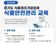 (케이엠뉴스) 경기도는 도내 식품제조·가공업체의 자율적 위생관리 역량을 강화하기 위해 ‘도내 식품제조·가공업체 위생관리 교육’ 참여자를 모집한다고 20일 밝혔다. 교육대상자는 위생관리등급제(자율·일반·중점) 식품제조가공업체 중 53.6%에 해당하는 음료류, 조미식품류, 농산가공식품류, 절임류 또는 조림류 등의 식품제조가공업체 대표자 또는 품질관리자이다. 교육은 5월 21일 경기도경제과학진흥원, 6월 26일 남양주시청 제1청사에서 300명을 대상으로 진행된다. 교육시간은 오후 1시부터 5시까지다. 올해 교육은 ‘최신 식품 표시기준 준수 및 관리 전략’은 물론, 제조 현장의 주요 위생 현안인 ‘이물 혼입 방지, 원인 규명 등 이물 관리 대응법’을 집중적으로 다룬다. 또한 실제 행정처분 사례 분석을 통해 업체가 자율적으로 법규 준수 여부를 상시 점검할 수 있는 역량을 강화하는 데 초점을 맞췄다. 교육 참가자에게 배부하는 ‘위생관리 길잡이’에는 ▲업체별 위생관리 취약요소 상세설명서 ▲작업 전 필수 확인사항 등 현장 적용이 용이한 위생관리수칙 ▲식품위생 관계 법령에 따른 각종 법적 서류 양식 샘플 등이 수록