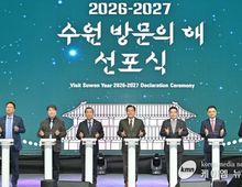 (케이엠뉴스) 이재준 수원특례시장이 24일 수원컨벤션센터에서 열린 ‘2026-2027 수원 방문의 해’ 선포식에서 “수원의 문을 세계로 활짝 열겠다”고 말했다. 이재준 시장은 기념사에서 “수원 방문의 해는 수원의 가치를 세계와 나누겠다는 가슴 벅찬 선언”이라며 “수원은 케이(K)-콘텐츠를 선도하고, 한국 방문 관광객 2000만 명 시대를 견인할 역량이 충분한 도시”라고 밝혔다. 이어 “수원은 세계가 주목하는 ‘글로벌 문화관광 도시’가 될 수 있다”며 “희망찬 여정에 시민 모두가 도시의 주인이라는 마음으로 함께해 주시길 바란다”고 말했다. 이날 선포식은 수원 방문의 해 로고 기수단 입장으로 시작됐다. 이재준 수원시장과 산하기관·관광업계·시민단체 대표 30명이 기수로 참여했다. 수원시는 수원화성 축성 230주년(2026년), 수원화성 유네스코 세계문화유산 지정 30주년(2027년)을 맞아 수원 방문의 해를 선포했다. 슬로건은 ‘수원, 당신을 위한 관광도시(Suwon For You)’다. 연간 1500만 명이 찾는 글로벌 관광도시를 발돋움하는 것을 목표로 설정했다. 수원 방문의 해 5대 추진