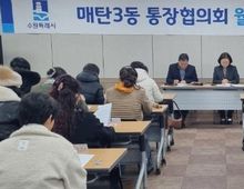 (케이엠뉴스) 수원시 영통구 매탄3동은 지난 24일 시정 및 동정 소식 공유를 위한 2월 통장협의회 월례회의를 개최했다. 이날 회의에서는 '새빛 생활비 패키지' 사업 중 하나인 △여성 청소년 생리용품 보편 지원 사업을 비롯하여 △초등 저학년 등하교 동행 돌봄 서비스, △어르신 스포츠상품권 지급 사업 등 시민 홍보가 필요한 주요 사업들을 공유했다. 아울러 ‘제9회 전국동시지방선거’를 대비해 통장의 선거운동 금지와 정치적 중립 의무 등 '공직선거법' 관련 유의 사항을 공유하고 준수를 당부했다. 김병목 매탄3동장은 “주민과 가장 가까운 곳에서 소통해주시는 통장님들의 노고에 감사드린다”며 “앞으로도 통장협의회와의 긴밀한 협력체계를 유지하여 살기 좋은 매탄3동 조성을 위해 노력하겠다”고 말했다.