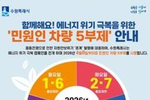 (케이엠뉴스) 정부의 원유 부문 자원안보위기 경보 ‘경계’ 단계로 발령에 따라 수원특례시가 8일부터 공영주차장 5부제를 시행한다. 대상은 공공기관이 운영하는 공영·부설 주차장을 이용하는 승용차(경차·하이브리드 자동차 포함)다. 차량 번호 끝자리 1·6은 월요일, 2·7은 화요일, 3·8은 수요일, 4·9는 목요일, 5·0은 금요일에 운행할 수 없다. 토·일요일, 공휴일은 5부제를 적용하지 않는다. ▲장애인 사용 자동차(국가유공자 차량, 장애인 동승 포함) ▲임산부·유아(미취학 아동) 동승 차량 ▲환경친화자동차(전기·수소차) ▲긴급·의료·보도·외교·경호·경찰·소방 등 특수목적 차량 ▲생계유지를 위해 필요한 생계형 차량은 5부제 대상에서 제외된다. 공영주차장 56개소 중 전통시장·관광지 인근 주차장, 환승주차장 등 44 공영주차장은 정상 운영하고, 12개 공영주차장에서 5부제를 시행한다. 공영주차장 5부제는 자원안보위기 ‘경계’ 발령이 해제될 때까지 이어진다. 수원시 관계자는 “국가적 자원안보 위기 속에서 에너지를 절약하고, 교통 수요를 관리하기 위해 공영주차장 5부제를 추진한다”며 “시민 여러분께서