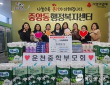 (케이엠뉴스) 오산시 중앙동 행정복지센터는 지난 5일 운천중학교 학부모회로부터 설 명절을 맞아 지역 내 저소득 어르신을 위한 생필품 20세트를 후원받았다고 밝혔다. 이번 후원은 설 명절을 홀로 보내거나 경제적 어려움을 겪고 있는 독거 어르신들에게 실질적인 도움을 전하고자 마련됐다. 후원 물품은 샴푸, 휴지, 치약·칫솔, 비누 등 일상생활에 꼭 필요한 생필품으로 구성됐으며, 관내 독거 어르신 20가구에 전달될 예정이다. 정유선 운천중학교 학부모회장은 “명절을 앞두고 홀로 지내시는 어르신들께서 이웃의 따뜻한 정을 느끼시길 바라는 마음으로 회원들과 뜻을 모았다”며 “작은 정성이지만 어르신들께서 건강하고 따뜻한 설 명절을 보내시는 데 도움이 되길 바란다”고 전했다. 백경희 중앙동장은 “지역사회를 위해 이웃사랑을 실천해 주신 운천중학교 학부모회에 깊이 감사드린다”며 “기탁해 주신 물품은 정성 어린 마음을 담아 도움이 필요한 어르신들께 소중히 전달하겠다”고 밝혔다.