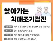 (케이엠뉴스) 오산시치매안심센터는 지역 어르신의 치매 조기 발견 및 예방 관리를 위해 오는 2월 25일부터 ‘찾아가는 치매조기검진’ 사업을 본격 추진할 계획이라고 밝혔다. 이번 사업은 치매안심센터 방문이 어려운 어르신을 대상으로 마련됐으며, 관내 양산동 소재 경로당을 비롯하여 관내 어르신 이용률이 높은 시설을 중심으로 전문 인력이 직접 방문하여 치매 선별검진을 제공함으로써 검진 접근성을 높이고, 치매 관리 취약 지역에 거주하는 고위험군 어르신을 조기에 발견하여 치매인지선별검사와 치매예방교육을 무료로 제공할 예정이다. 본 사업은 사전 예약제로 운영되며, 신청 기관 및 시설과의 일정 조율 후 현장 방문 방식으로 검진이 진행된다. 사업 참여를 희망하는 경로당 및 어르신 이용시설은 오산시치매안심센터로 문의·신청하면 된다. 검진 결과에 따라 개별 상담을 제공하고, 필요시 추가 검진 및 관련 서비스 연계도 함께 지원할 에정이다. 김태숙 오산시보건소장은 “찾아가는 치매조기검진 사업을 통해 치매 고위험군을 조기에 발견하고 지역 어르신들이 보다 편리하게 치매 검진 서비스를 이용할 수 있을 것으로 기대한다”며 “앞으로도 지역사회