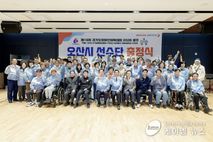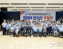 (케이엠뉴스) 오산시장애인체육회는 ‘제16회 경기도장애인체육대회 2026 광주’에 참가하는 오산시 선수단 출정식을 지난 10일 오산오색문화체육센터에서 개최했다고 밝혔다. 이날 출정식에는 이권재 오산시장을 비롯해 시의원, 장애유형별 단체장, 종목별 가맹단체장 및 임원 등 내빈과 선수단 등 130여 명이 참석해 선수들의 사기를 북돋우고 선전을 다짐했다. 오산시 선수단은 이번 대회에 당구, 론볼, 배드민턴, 보치아, 볼링, 역도, 조정, 탁구, 파크골프, 육상, 수영 등 11개 종목에 총 75명이 참가해 그동안 갈고닦은 기량을 펼칠 예정이다. 출정식은 개회선언을 시작으로 격려사와 축사, 선수단 소개, 단기 수여, 선수대표 선서, 필승구호 제창, 후원기금 및 격려금 전달 순으로 진행됐다. 특히 선수대표는 정정당당한 경기와 최선을 다하는 자세로 임할 것을 다짐하며 선수단의 결의를 다졌다. 이권재 오산시장은 “힘든 훈련을 이겨내고 이 자리에 선 선수들이 자랑스럽다”며 “부상 없이 안전에 유의해 최고의 기량을 발휘하고 돌아오길 바란다”고 격려했다. 한편, ‘제16회 경기도장애인체육대회 2026 광주