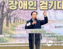 (케이엠뉴스) 오산시장애인체육회는 공동주관인 JCI오산청년회의소와 함께 장애인의 날(4월 20일)을 기념해 지난 11일 오산천 일원에서 ‘2026 가족과 함께하는 장애인 걷기대회’를 개최했다고 밝혔다. 이번 걷기대회는 오산천 왕복 4km 구간에서 진행됐으며, 이권재 오산시장(오산시장애인체육회장)을 비롯해 도·시의원, 유관기관 및 장애유형별 단체장, 오산시장애인체육회 종목별 가맹단체장 및 임원과 시민 등 450여 명이 참여해 장애인과 비장애인이 함께 어우러지는 화합의 장을 만들었다. 특히 휠체어 이용자와 보행이 불편한 참가자들도 안전하게 참여할 수 있도록 무장애 동선을 마련하고, 자원봉사자들이 이동을 지원해 모두가 함께하는 행사로 의미를 더했다. 행사에서는 통기타 동아리 ‘해오랑’의 공연과 (사)전국장애인부모연대 경기도지부 오산지회 산하 권리중심형 일자리 참여자들로 구성된 ‘우당탕탕’ 댄스동아리의 공연이 이어지며 참가자들에게 즐거움을 선사했다. 이권재 오산시장은 “이번 걷기대회를 통해 장애와 비장애의 경계를 허물고 서로를 존중하는 사회 분위기가 확산되길 기대한다”며 “앞으로도 모두가 함께 어울릴 수