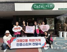 (케이엠뉴스) 오산시 대원2동은 지난 16일 지역 내 카페 ‘아뜨’를 ‘착한날개(착한가게)’ 14호점으로 지정하고 인증스티커를 전달했다고 밝혔다. 이번 착한가게 참여를 통해 카페 ‘아뜨’는 매월 3만 원 이상 정기후원을 약정하며 지역사회 나눔 실천에 동참하게 됐다. 후원금은 복지사각지대 발굴과 위기가구 지원 등 대원2동 맞춤형 복지사업에 활용될 예정이다. ‘착한날개(착한가게)’ 사업은 지역 내 자영업자와 기업, 단체 등이 매월 3만 원 이상 정기후원하거나 현물을 지원해 지역 복지자원을 확대하는 나눔 캠페인이다. 민·관 협력을 통한 촘촘한 복지안전망 구축을 목표로 추진되고 있다. 김지희 카페 ‘아뜨’ 대표는 “작은 정성이지만 지역사회에 도움이 될 수 있어 기쁘다”며 “앞으로도 이웃과 함께하는 따뜻한 나눔을 꾸준히 실천하고 싶다”고 말했다. 김소영 대원2동장은 “어려운 여건 속에서도 나눔에 동참해주신 대표님께 감사드린다”며 “이 같은 따뜻한 참여가 지역사회 나눔 문화 확산에 큰 힘이 되고 있다”고 전했다. 이어 “앞으로도 착한날개 사업을 지속적으로 확대해 복지사각지대 없는 따뜻한 대원2동을 만들어가겠다