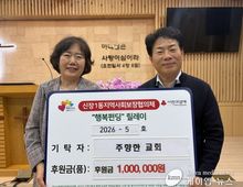 (케이엠뉴스) 오산시 신장1동 행정복지센터는 지난 24일 신장1동 소재 주향한교회가 어버이날을 맞아 관내 취약계층 어르신들을 위한 후원금 100만원을 기탁했다고 밝혔다. 이번 후원은 어버이날을 맞아 지역 어르신들에게 따뜻한 마음을 전하고자 마련됐으며, 전달된 성금은 관내 취약계층 어르신들의 생활안정과 정서적 지원을 위해 사용될 예정이다. 주향한교회는 ‘요셉의 창고’라는 이름으로 지속적인 나눔을 실천하고 있다. 교회는 성도들의 자발적인 참여로 모금된 성금을 매년 신장1동 행정복지센터에 기탁하고 있으며, 해당 재원은 지역 내 취약계층을 위한 다양한 복지사업에 활용되고 있다. 특히 주향한교회는 2020년부터 신장1동과 인연을 맺고 백미 지원 등 꾸준한 후원을 이어오며 지역사회 복지안전망 강화에 기여해 왔다. 지속적인 나눔 활동은 지역사회 내 든든한 버팀목이 되고 있다는 평가다. 주향한교회 관계자는 “예수님의 가르침처럼 이웃에게 따뜻한 손길을 전하고자 성도들의 마음을 모았다”며 “앞으로도 ‘요셉의 창고’를 통해 지역사회와 함께하는 나눔을 이어가겠다”고 말했다. 이명숙 신장1동장은 “매년 변함없