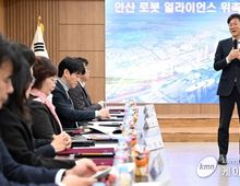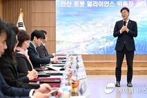 (케이엠뉴스) 안산시가 대한민국 로봇산업 중심 도시로 도약하기 위해 ‘안산시 로봇산업 육성 및 지원에 관한 조례’를 제정·시행하며 로봇도시 조성에 속도를 내고 있다. 시는 지난 27일 시청 제1회의실에서 지자체 관계자와 대학, 로봇 유관기관, 로봇 수요기업 전문가 등으로 구성된 실무 중심 협의체 ‘안산 로봇얼라이언스’ 위촉식을 열고 제1회 정기회의를 개최했다고 28일 밝혔다. 이날 출범한 ‘안산 로봇얼라이언스’는 기존 실무협의체를 확대·개편한 조직으로, 로봇 수요처와 중앙부처 유관기관까지 참여 범위를 넓혀 실효성을 강화했다. 안산사이언스밸리(ASV) 유관기관을 비롯해 안산상공회의소, 스마트허브경영자협회, 스마트허브여성경영자협의회 등 수요기관과 한국로봇산업진흥원, 한국로봇산업협회 등 전국 단위 기관 전문가 20여 명이 위원으로 참여한다. 위촉식 이후 진행된 회의에서는 얼라이언스를 이끌어갈 회장과 부회장을 호선으로 선출했다. 회장에는 박태준위원, 부회장에는 박상민위원이 각각 선출됐다. 이어 시가 수립한 ‘로봇산업 육성 기본계획’을 공유하고, 단계별 실행 전략과 협력 방안을 논의했다. 위원들은 앞으로