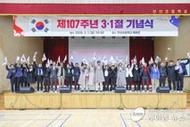 (케이엠뉴스) 안산시의회가 1일 상록구 수암동 안산초등학교에서 열린 ‘제107주년 3·1절 기념식’에 참석해 일제에 항거한 선열들의 희생을 기리고 3·1절 정신을 되새겼다. 이날 기념식에는 박태순 의장과 김재국 부의장, 최진호 의회운영위원장, 한명훈 기획행정위원장, 설호영 문화복지위원장, 박은정 도시환경위원장, 현옥순 의회운영부위원장, 김유숙 기획행정부위원장, 유재수 문화복지부위원장, 이지화 도시환경부위원장, 박은경, 이진분, 최찬규, 선현우, 황은화 의원 등 다수의 의원들이 참석해 자리 한 400여명의 시민들과 뜻을 더했다. 의원들은 이날 3·1운동 경과보고, 독립선언문 낭독, 3·1절 노래 제창, 만세 삼창 등의 기념식 의식에 임하며 일제에 맞서 싸운 선조들의 희생과 3·1운동의 역사적 의미를 되돌아보는 시간을 가졌다. 이어 기념식 뒤에는 시민들과 함께 안산초등학교부터 인근 ‘3·1운동 기념탑’까지 진행된 만세 행진에 참여하면서 107년 전 만세를 외쳤던 선열들의 발길을 좇았다. 이날 기념식이 개최된 수암동 일대는 일제 강점기인 1919년 3월 30일 당시 인근 18개 리 주민 2천여 명이 참여