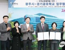 (케이엠뉴스) 광주하남교육지원청은 30일 광주시청 비전홀에서 광주시와 함께 ‘지역교육협력을 위한 광주시–경기공유학교 업무협약’을 체결했다고 밝혔다. 이번 협약은 기존 ‘미래교육협력지구 사업을 위한 협약’을 공식적으로 변경·확대하는 것으로, 경기형 공유학교를 중심으로 한 지역교육 협력의 제도적 틀을 새롭게 마련했다는 점에서 의미가 크다. 이번 협약은 2026년부터 2028년까지 적용되며, 지역 문화·예술·디지털 교육 등 다양한 교육자원을 연계한 경기공유학교 모델을 지역 차원에서 안정적으로 운영하는 데 목적이 있다. 이를 통해 학생 개개인의 특성과 진로, 학습 수요에 맞춘 맞춤형 교육 지원이 가능해질 것으로 기대된다. 이날 협약식에는 오성애 광주하남교육지원청 교육장과 방세환 광주시장을 비롯한 양 기관 관계자 10여 명이 참석해 변경된 협약서 주요 내용 공유, 인사말, 협약서 서명 및 교환 순으로 행사를 진행했다. 특히 협약 명칭을 ‘지역교육협력을 위한 광주시–경기공유학교 업무협약’으로 변경하며, 학교 중심이 아닌 지역 협력 중심의 정책 방향 전환을 분명히 했다. 협약에 따라 양 기관은 ▲지역 교육자원 연계 및 공동
