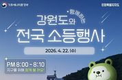 (케이엠뉴스) 강원특별자치도는 제56주년 지구의 날(4월 22일)을 맞아 탄소중립 인식 제고와 실천문화 확산을 위해 4월 20일부터 24일까지 ‘2026년 기후변화주간’을 운영한다. 특히 최근 원유 수급 위기 ‘경계’ 단계 발령에 따라 공공부문의 선제적 에너지 절약 대응과 연계 추진해 위기 극복의 시너지를 극대화할 방침이다. 주요 행사로는 지구의 날 당일인 4월 22일 저녁 8시부터 10분간 진행되는 ‘전국 동시 소등행사’가 있다. 도청과 시군청, 공공기관 청사 조명을 일제히 소등하고, 아파트 등 공동주택과 주요 경관시설에 대해서도 도민의 자발적 참여를 유도할 계획이다. 실질적인 온실가스 감축을 위한 공공부문의 노력도 이어진다. 도와 한국기후변화연구원 등 도내 24개 기관은 4월 20일부터 30일까지 ‘지구를 위한 쉬는 시간, 컴퓨터 오프(OFF) 챌린지’를 운영한다. 점심시간 1시간 동안 컴퓨터 전원을 차단하는 캠페인으로, 100명이 10일간 참여할 경우 소나무 1그루 식재에 해당하는 이산화탄소 저감 효과가 기대된다. 도민들과 직접 소통하는 현장밀착형 온·오