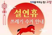 (케이엠뉴스) 고양특례시는 설 연휴를 앞두고 시민들이 깨끗하고 쾌적한 환경에서 명절을 보낼 수 있도록 ‘설 연휴 생활쓰레기 관리대책’을 마련하고 비상 대응체계를 운영한다. 연휴 기간인 2월 14일부터 18일까지 시는 상황반과 기동청소반을 운영해 쓰레기 관련 민원과 긴급 상황에 신속히 대응한다. 특히 연휴 중 무단 방치된 쓰레기는 발견 즉시 수거해 시민 불편이 발생하지 않도록 할 계획이다. 또한 상습 무단투기 지역을 집중 점검하고 단속을 병행하는 한편, 올바른 쓰레기 배출 방법과 배출일 준수에 대한 홍보도 강화한다. 다만 2월 15일부터 17일까지는 수거업체 휴무로 생활쓰레기 수거가 진행되지 않는다. 시 관계자는“연휴 기간 배출일을 지키지 않을 경우 쓰레기가 장기간 방치될 수 있어 시민들의 협조가 무엇보다 중요하다”며, “쓰레기는 반드시 수거일 전날 일몰 이후에 배출해 달라”고 당부했다. 이어“시민 여러분께서도 음식물쓰레기 줄이기와 재활용품 분리배출에 적극 동참해 주시면 더욱 깨끗한 명절을 보낼 수 있을 것”이라고 강조했다. 시는 앞으로도 시민 생활과 밀접한 청소행정을 강화해