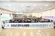 (케이엠뉴스) 양주시가 지난 12일 옥정호수도서관 3층 예술극장에서 양주시니어클럽 주관으로 ‘2026년 노인일자리 및 사회활동지원사업 발대식’을 개최했다. 이날 행사에는 노인일자리 참여 어르신과 관계자 등 180여 명이 참석해 성황을 이뤘다. 행사는 공립리첼아이어린이집 어린이 사물놀이단의 식전공연을 시작으로 ▲후원금 전달식 ▲관장 인사말 ▲내빈 축사 ▲개회 선포 ▲선언문 낭독 ▲피켓 행진 ▲단체사진 촬영 순으로 진행됐다. 또한 양주시니어클럽 공동체사업단 카페 매장의 수익금 일부를 모아 조성한 후원금 200만 원을 양주시사회복지협의회에 전달하는 행사도 함께 열렸다. 전달된 후원금은 관내 복지사각지대 대상 긴급지원에 사용될 예정이다. 서의동 양주시니어클럽 관장은 “참여 어르신들께 자긍심과 안전한 근무 환경을 제공하는 데 최선을 다하겠다”며, “특히 공동체사업단 카페 매장의 수익금을 지역사회 환원 사업에 활용해 어르신들의 사회참여가 실질적인 성과로 이어지도록 꾸준히 노력하겠다”고 말했다. 양주시 관계자는 “노인일자리사업은 어르신들의 활기찬 노후를 보장하고 지역사회 발전을 이끄는 주요 사업”이라며, “어르